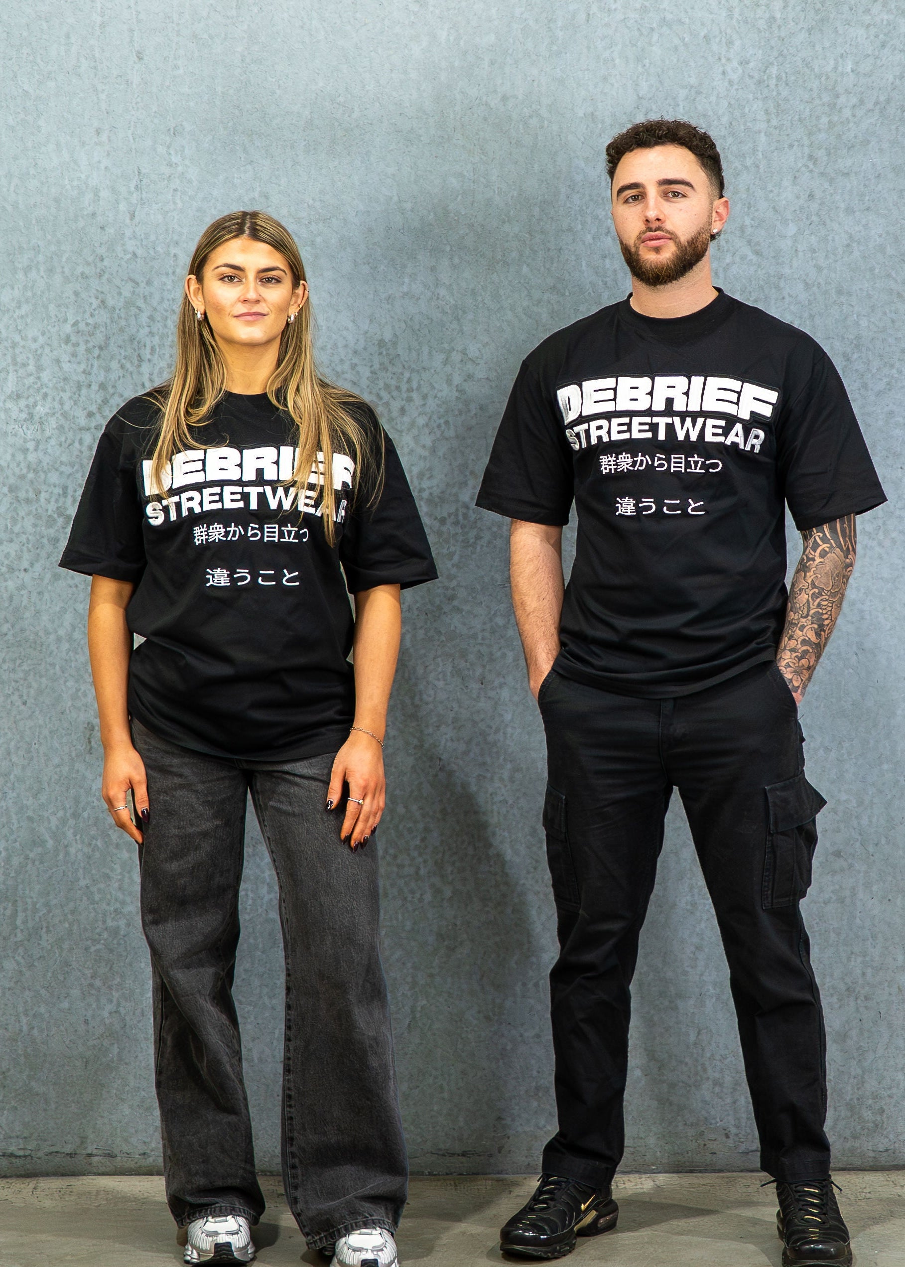 For those who don’t follow—they lead. The Vision Tee speaks individuality with a 3D embroidered logo and Japanese text on the front, translating to “Stand out from the crowd / Be different.” The back features a powerful grayscale collage of intense eyes, printed in crisp DTG.